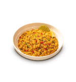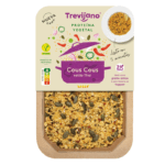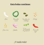 Ingredientes: Cous Cous, proteína texturizada de guisante, semillas de calabaza, coco, cebolla, curry pimiento rojo y pimiento verde… y nada más. Alérgenos: Puede contener trazas de sésamo, avellanas, apio y sulfitos.