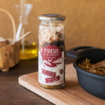 Ingredientes principales: Fideos, sofrito deshidratado, gambas liofilizadas, merluza liofilizada, bacalao liofilizao y pimentón dulce.